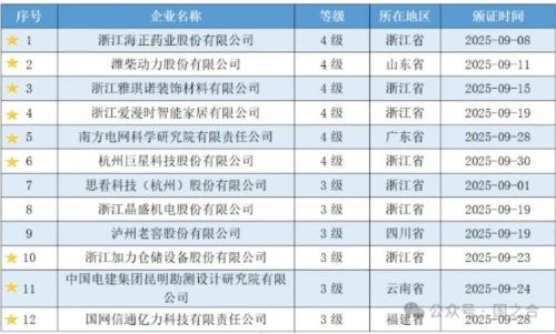 据创新与知识产权管理能力分级评价服务系统平台数据,2025年9月达到较高创新管理和知识产权管理水平的3级、4级企业共计12家。其中我司发放9张证书,占比达到75%,且4级证书100%由我司发放。在此,我司对广大客户长久以来的信任表示由衷的感谢,并承诺将一如既往地为广大客户创新与知识产权管理能力的提升提供高质量的评价服务。